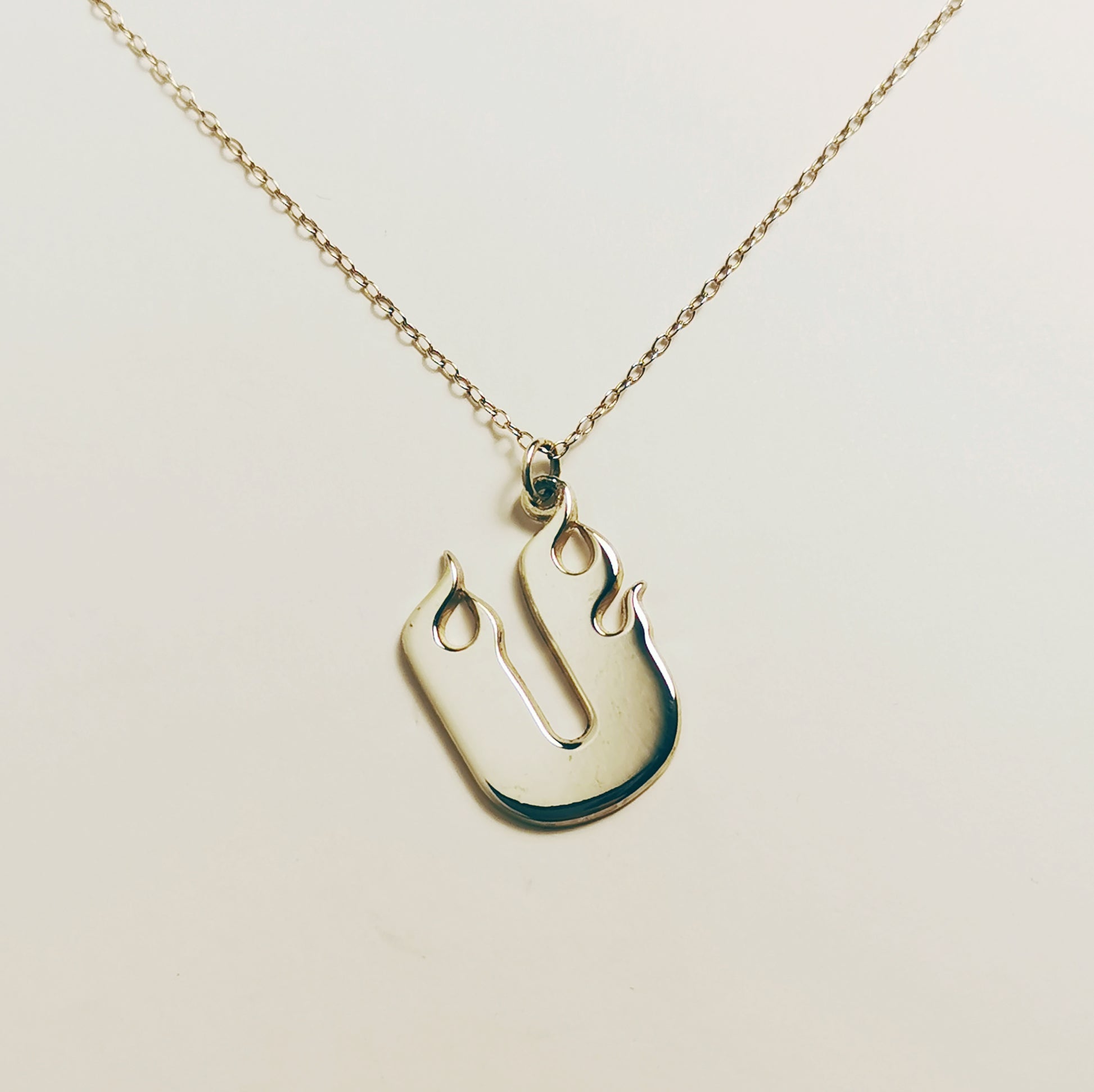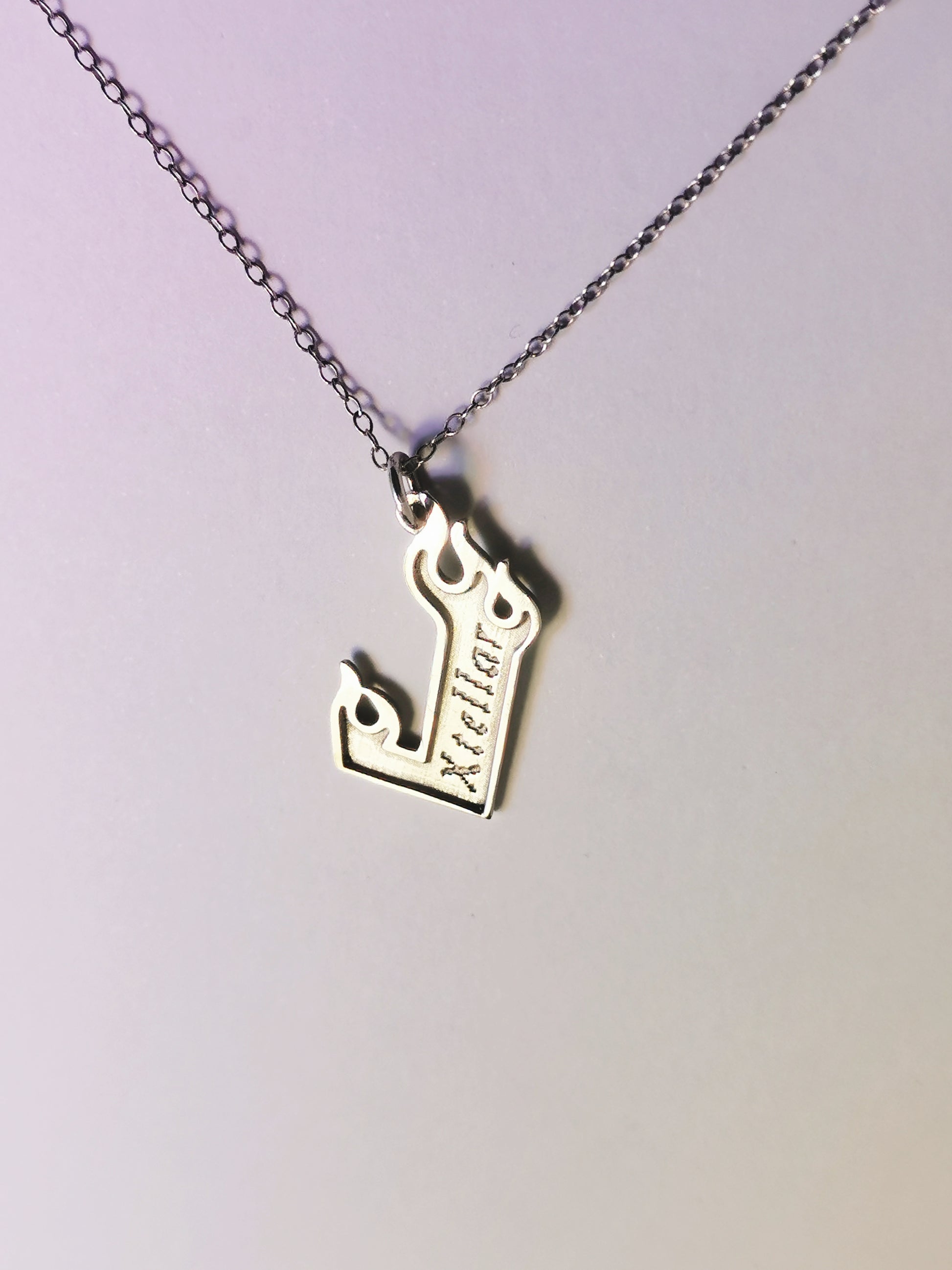 Initial necklace crafted in 925 sterling silver, featuring a letter surrounded by flames — a symbol of energy, creativity, and passion.