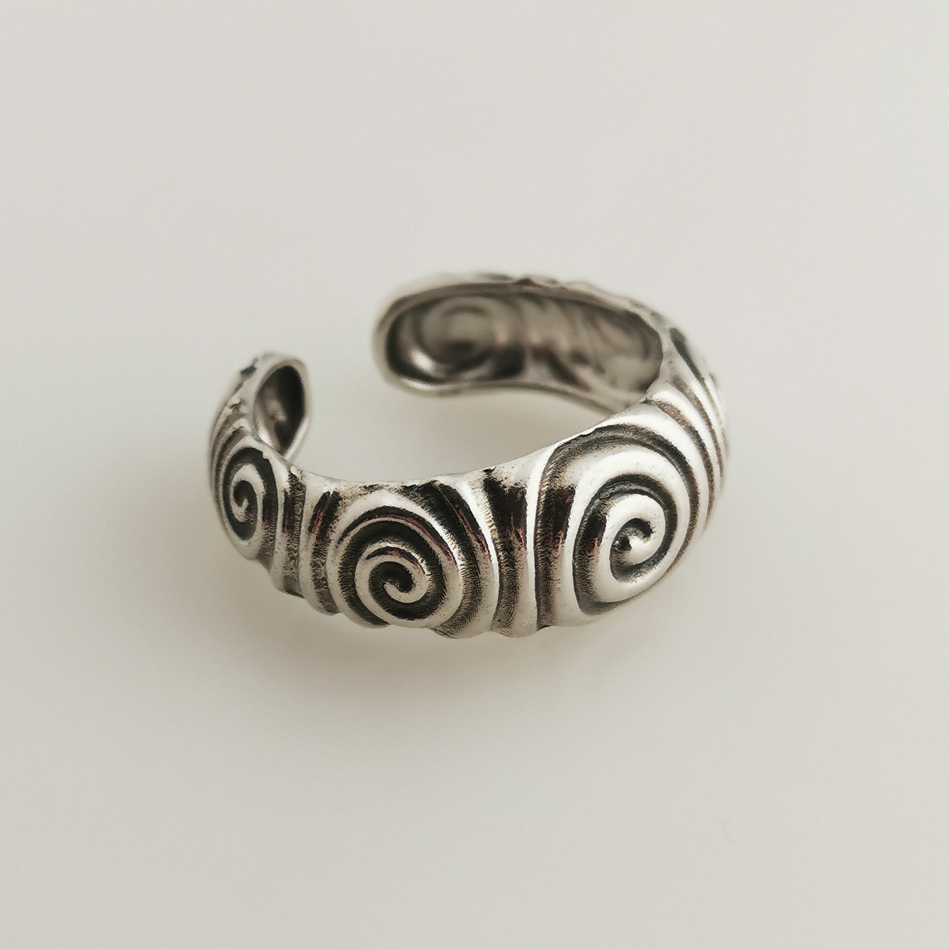 Dual Spiral – Adjustable Sterling Silver Ring and Ear Cuff