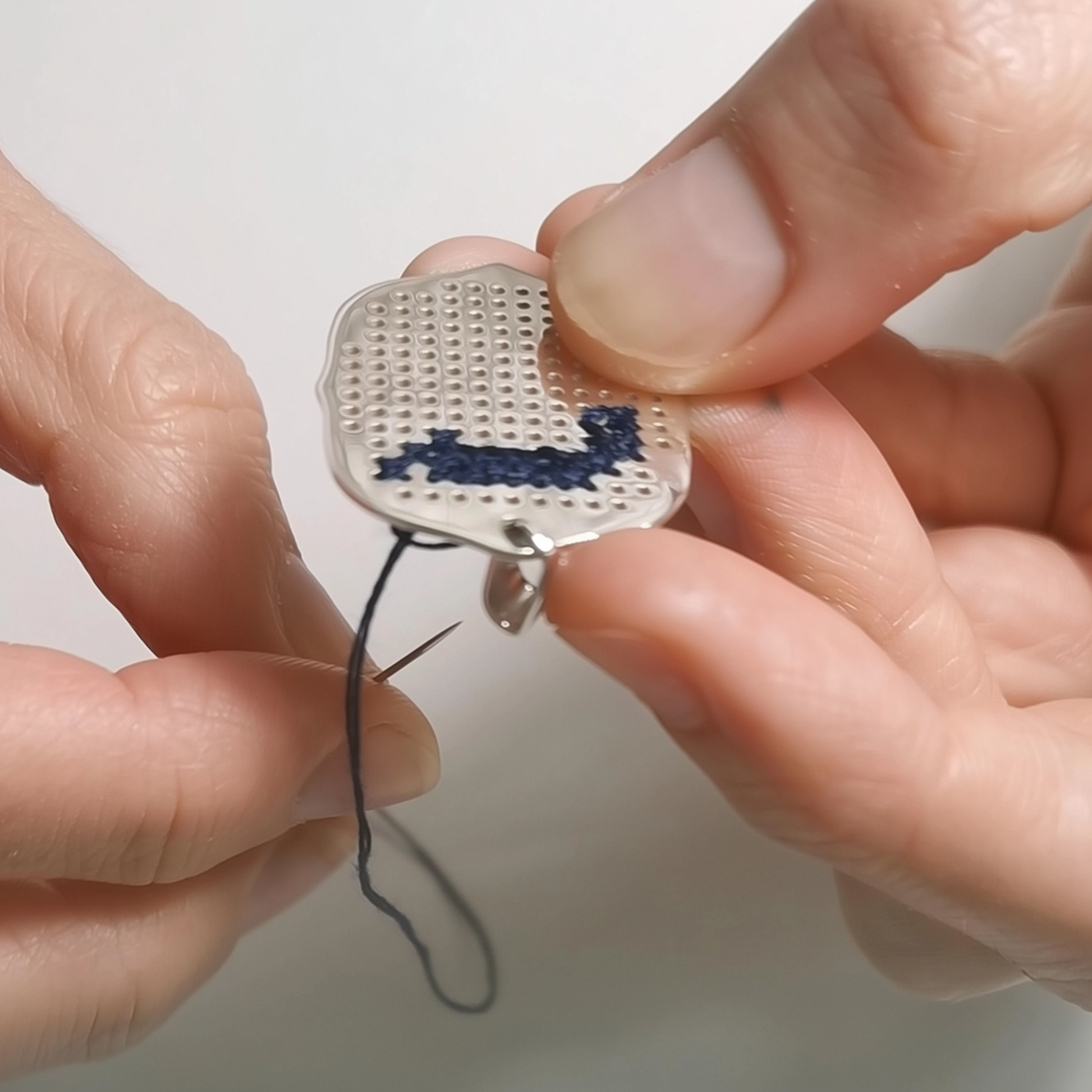 The necklace comes in its small sewing tin and includes everything you need to stitch, restitch, and change the design whenever you like. The embroidery can be removed and redone easily, and the stitching process may naturally mark the surface over time—an expected part of the piece’s character.